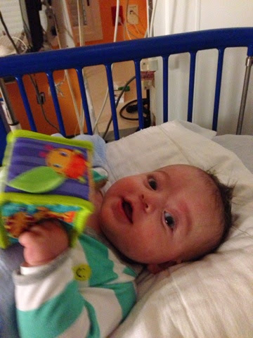 The doctor was impressed once again at how well he is doing. He is awake for periods of time now to which we love. He loves reading books and laying on his play mat. Luckily, he isn't a fussy baby. He is pretty happy most of the time. He only cries when he is hungry. He is moaner and a groaner but we will take it over crying all day long.